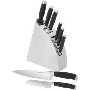 - Stellar JAMES MARTIN 8 Piece Stainless Steel Knife Block with Rubberised Handles with LIFETIME WARRANTY # High carbon hardened stainless steel blades Silicone anti slip handle design # Forged taper ground blades designed for lasting sharpness------Dishwasher safe